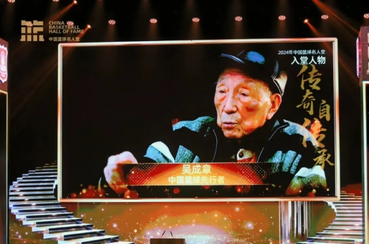現(xiàn)年101歲的吳成章老人是李震中先生1948年奧運會的隊友,雖然無法親臨現(xiàn)場,他仍通過視頻表達(dá)了自己進(jìn)入名人堂的喜悅。吳老之子吳忻水代父親領(lǐng)取名人堂徽章,并分享了他們之間的“父子籃球”軼事。