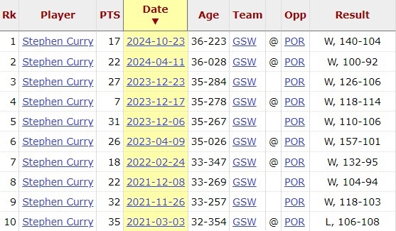 庫里目前對(duì)開拓者10連勝 他上次輸給開拓者還是1469天前