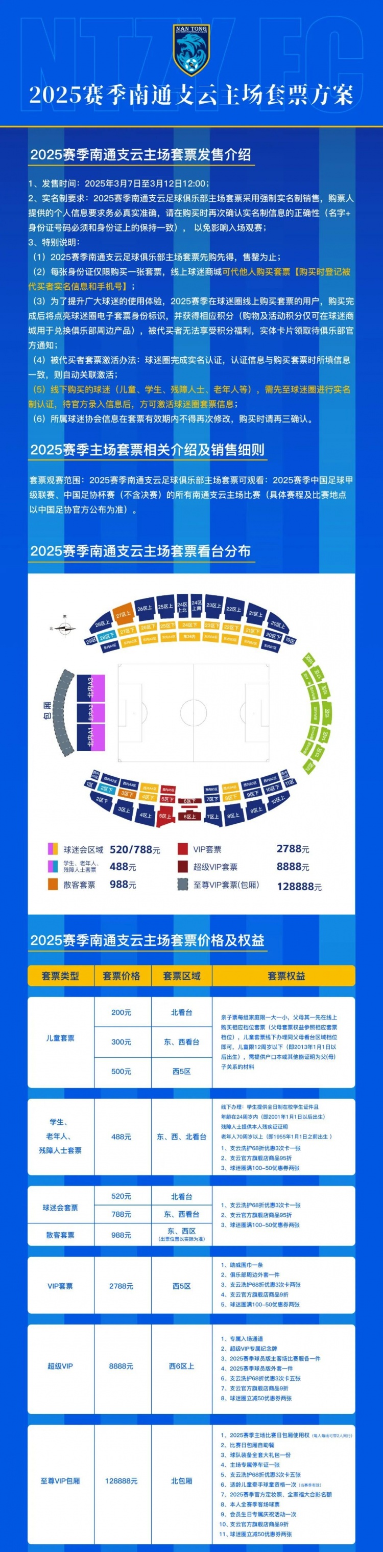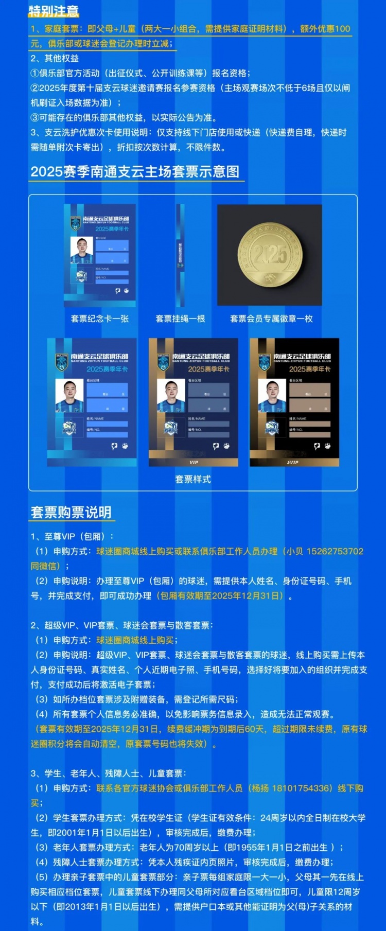 ?一、2025賽季南通支云主場套票發(fā)售介紹:
